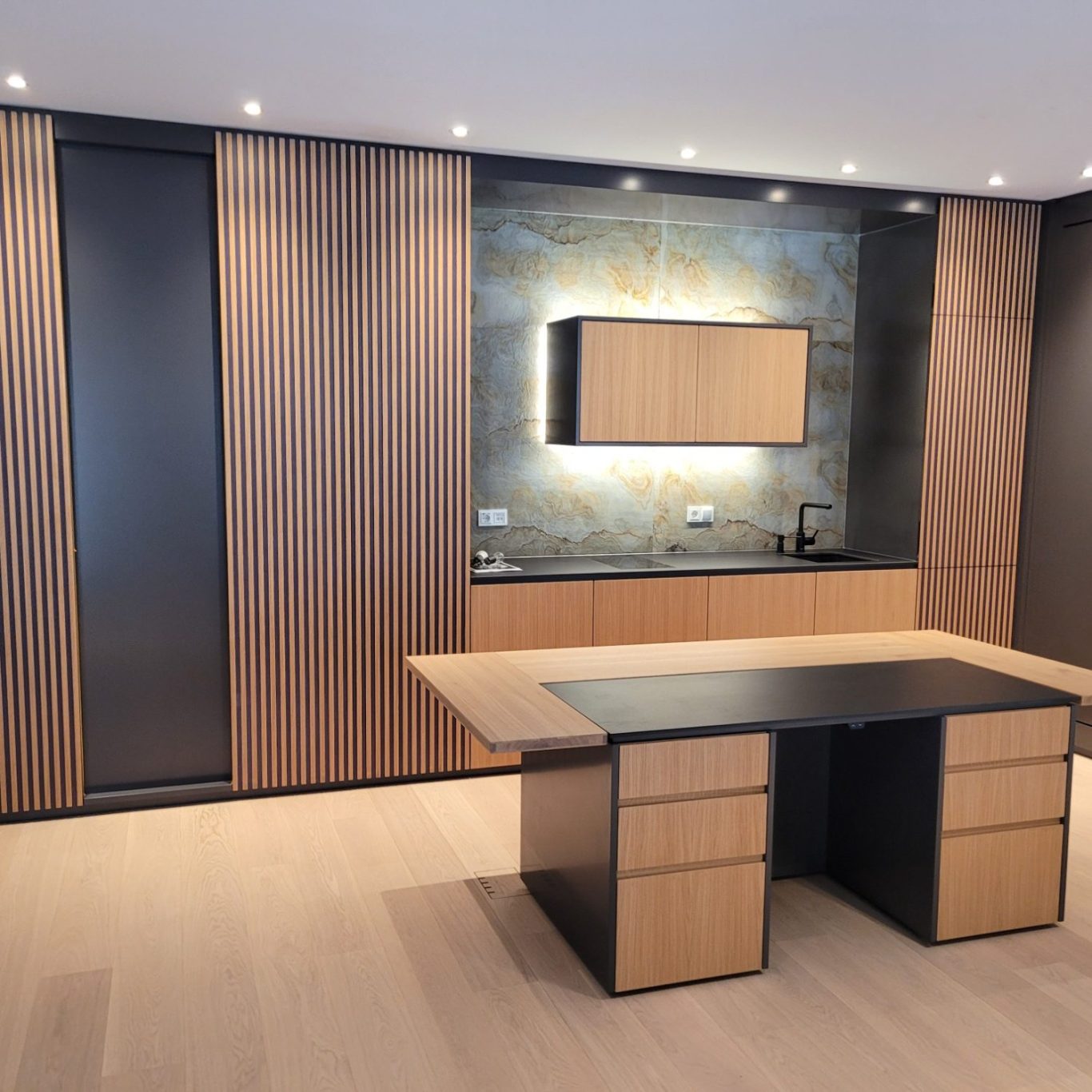 Unsere Leidenschaft gilt dem Zusammenspiel der Elemente. Wir kombinieren traditionelles Schreinerhandwerk mit modernen Akzenten aus Stein, Glas und Licht.